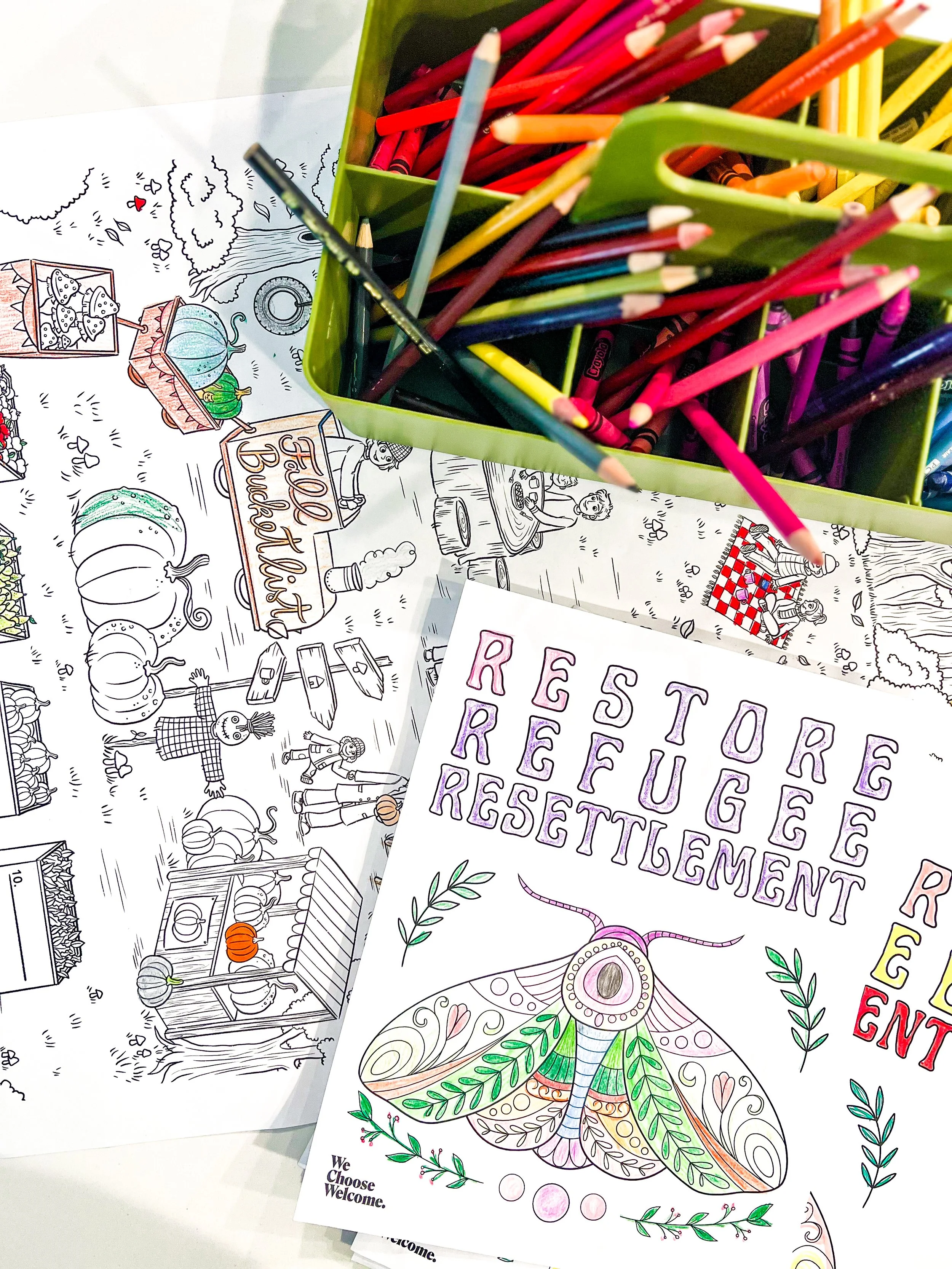 At the first House Cafe, where we do a Morning Fika based on the Swedish rhythm of life: to pause and enjoy life together, we also stopped and created these beautiful sheets that could be mailed to stand with refugees in our country who are facing uncertainty with their immigration status.
