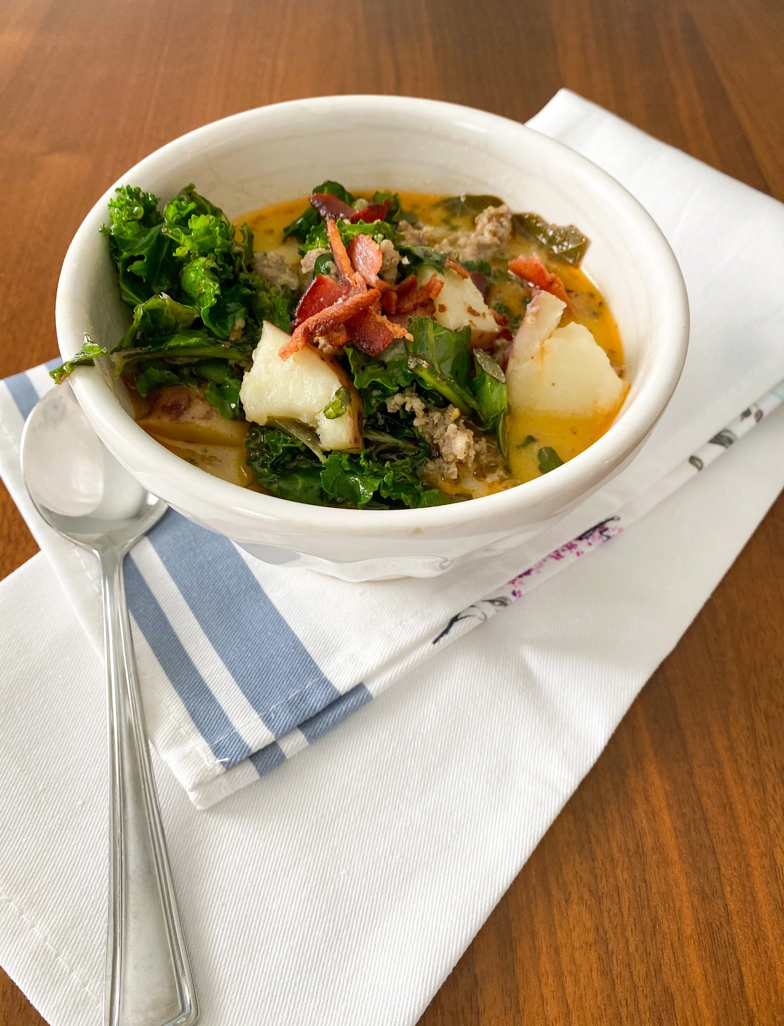 Fast forward to the present in the Midwest, where seasons are defined and full of tradition. The fall and winter months end up being know as soup season as well. I think though, that this Zuppa Toscana will add cozyness and lightness to any fall evening, winter night, spring day, or even summer get together.